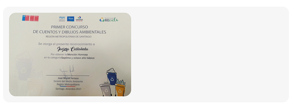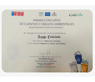 2017 Mención Honrosa Concurso Regional de Cuentos y Dibujos Ambientales categoría 5° a 8° básico